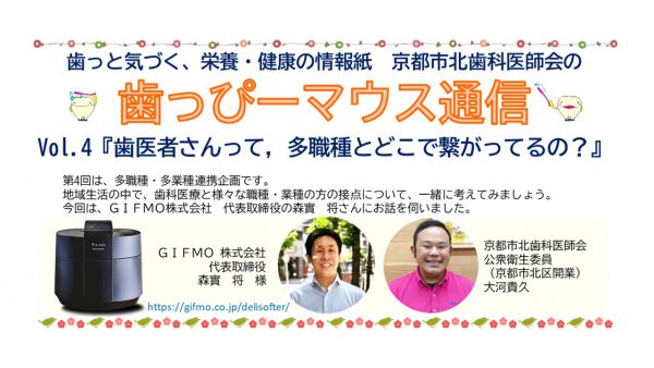 京都市北歯科医師会で新しい生活様式について,お口の健康について,食べることの見込むことについて,地域とつながりについて等をテーマに,様々な職種の方にインタビューさせていただき,コメントもいただいています.